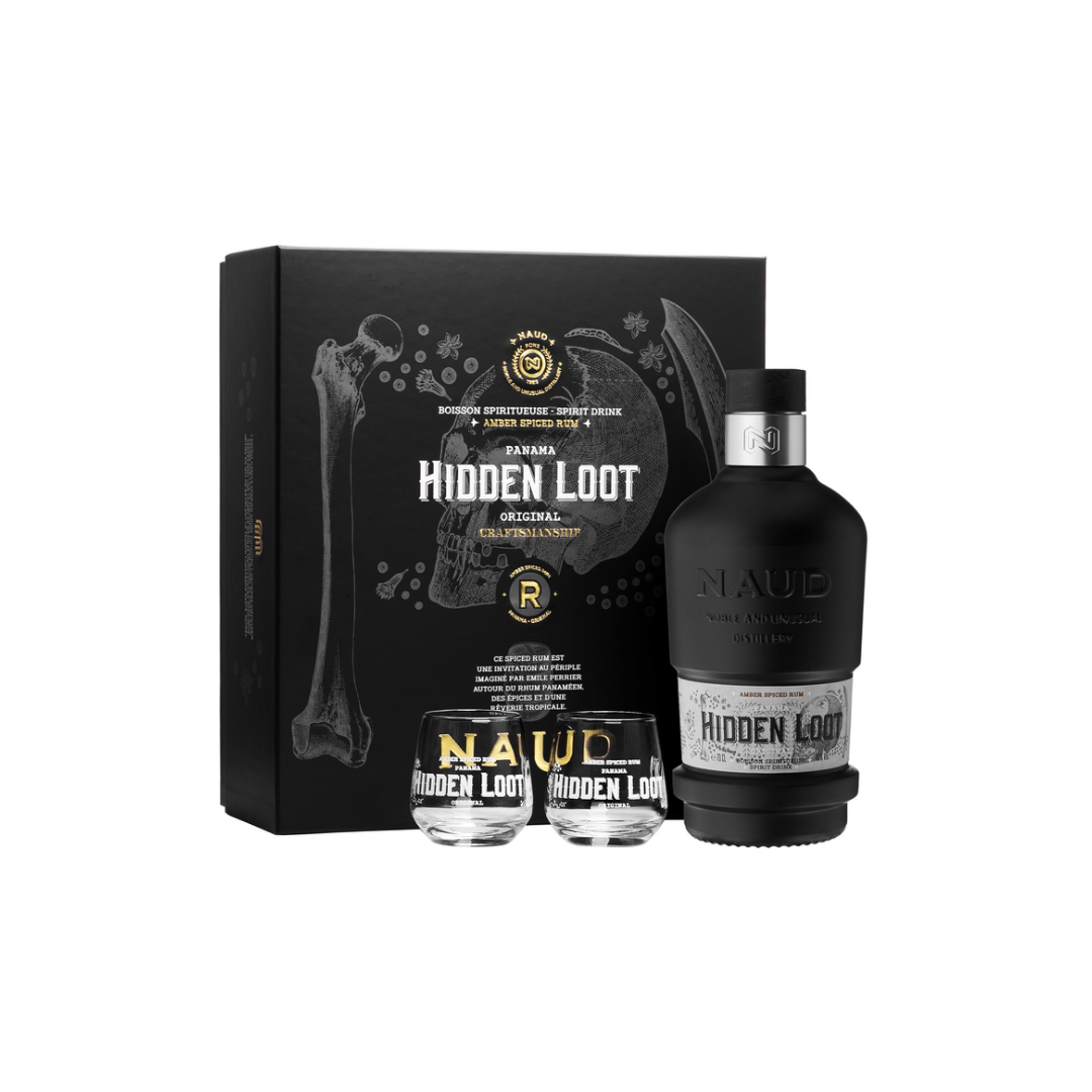 Naud Hidden Loot 70cl 40% GB + 2 Glasses რომი ნაუდ ჰიდენ ლუთ 0.7 ლ 40% ყუთი + 2 ჭიქით 817156020444